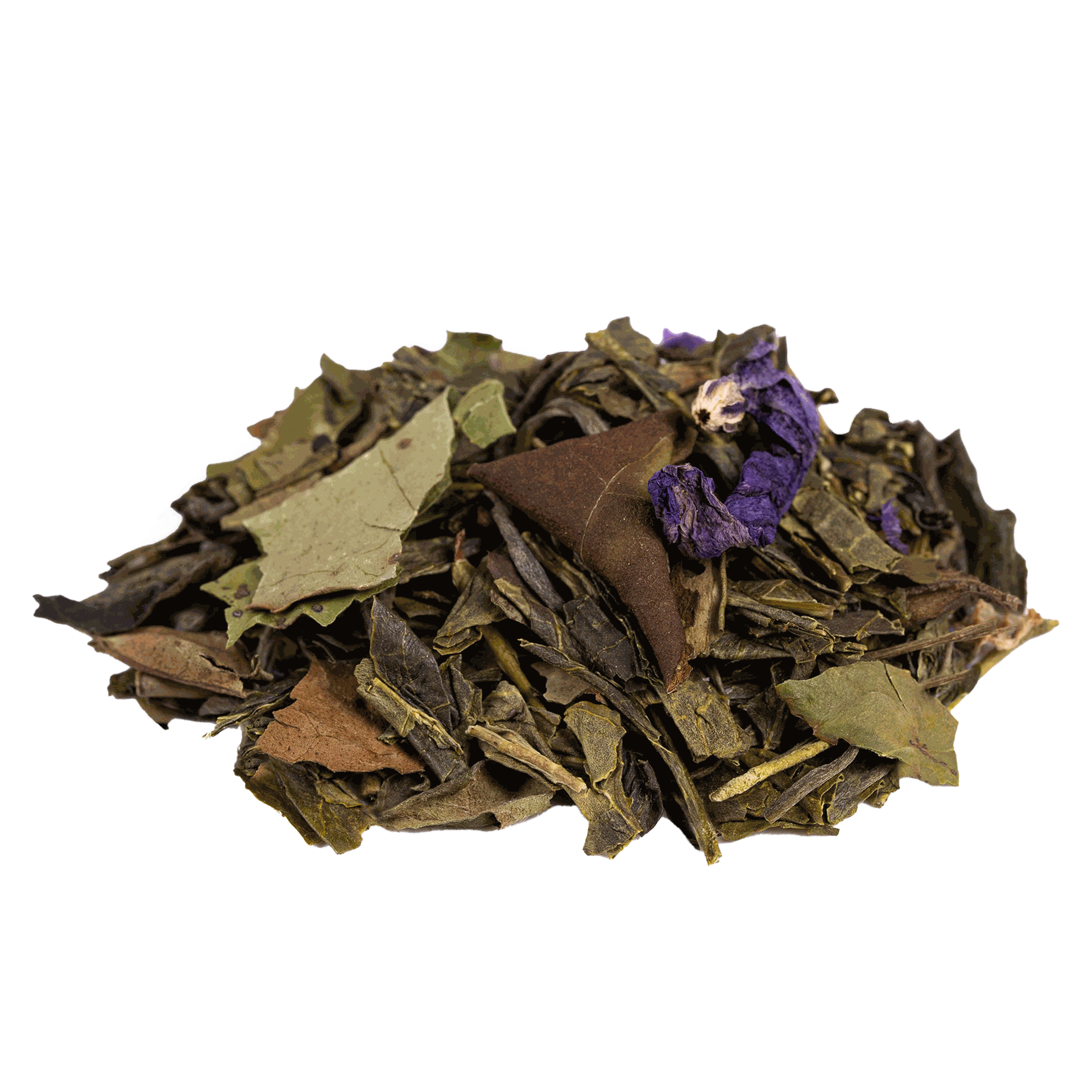 Thé vert China Sencha*, thé blanc Pai Mu Tan*, China White Monkey*, arôme naturel de framboise, framboise* (3%), arôme naturel de violette, mauve*, arôme naturel de fraise.