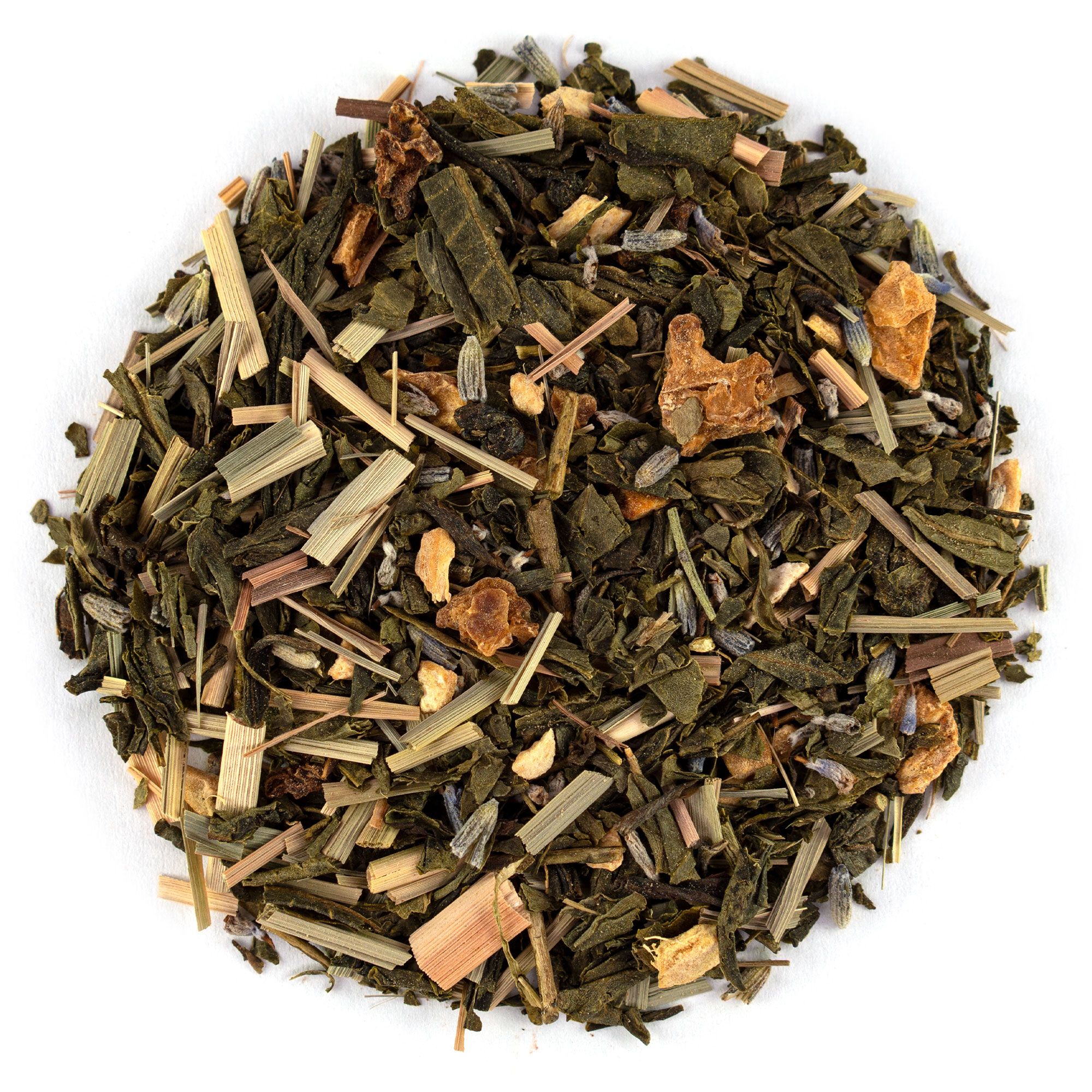 Thé vert China Sencha*, citronnelle*, gingembre*, écorces de citron*, lavande*, thé vert China Jasmin*, arôme naturel de citron, arôme naturel de lavande, arôme naturel de jasmin, arôme naturel de pamplemousse, gingembre moulu*.